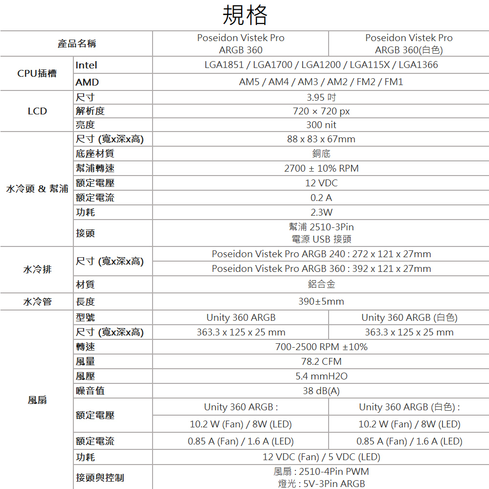 POSEIDON VISTEK PRO ARGB 360 LCD 一體式 CPU水冷散熱器 白色